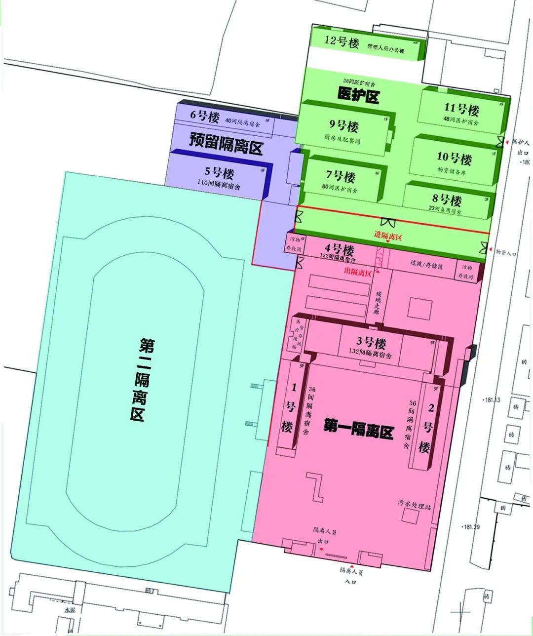 示范區(qū)疫情集中隔離中心項目由濟源投資集團所屬子公司濟源市仁悅醫(yī)療健康產(chǎn)業(yè)有限公司投資建設(shè),概算總投資1.19億元,項目用地約81余畝。按照“平疫結(jié)合”的建設(shè)要求,在原濟源市第一職業(yè)高中老校區(qū)的基礎(chǔ)上實施綜合改造提升,增設(shè)信息化管理設(shè)備設(shè)施,疫時將作為隔離中心使用,疫情結(jié)束后作為醫(yī)養(yǎng)康養(yǎng)中心使用。根據(jù)規(guī)劃設(shè)計,改造范圍分三個區(qū)域,分別為隔離區(qū)、緩沖區(qū)和醫(yī)護區(qū)。其中:改造隔離用房354套,新建活動隔離板房300套,合計654套隔離用房為隔離區(qū);醫(yī)護區(qū)共152套,緩沖區(qū)綜合用房內(nèi)設(shè)污物存放間、消防控制室、配電室、傳遞間、緩沖更衣間。