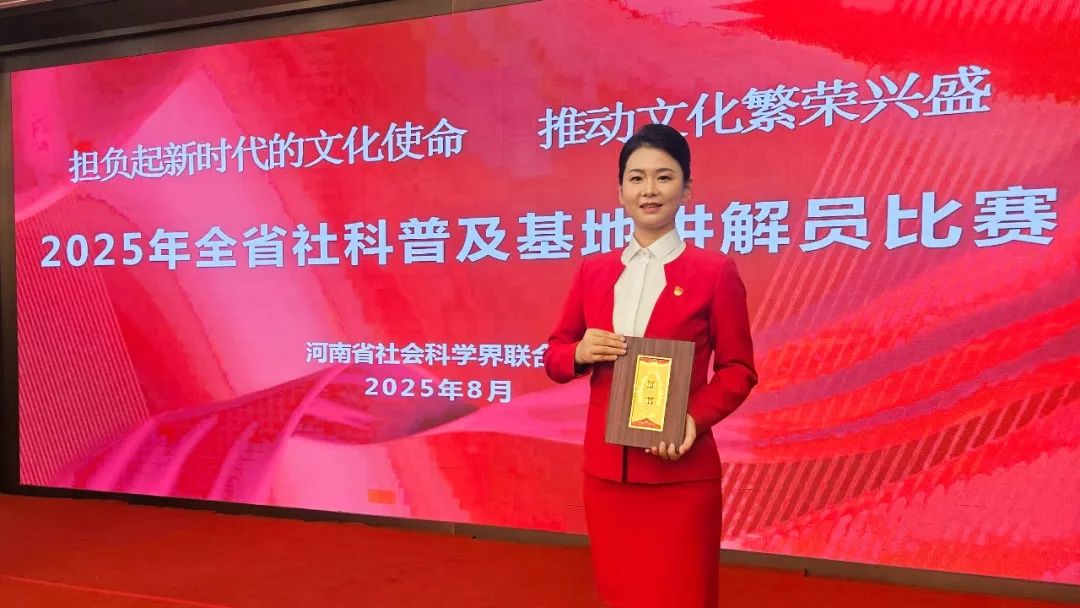 2025年河南省社科普及基地講解員比賽在鄭州圓滿落下帷幕,本次大賽由河南省社會(huì)科學(xué)界聯(lián)合會(huì)主辦,以“擔(dān)負(fù)起新時(shí)代的文化使命 推動(dòng)文化繁榮昌盛”為主題,共有來自全省各社科普及基地的30位優(yōu)秀講解員同臺競技,通過自主命題講解和隨機(jī)命題講解兩個(gè)環(huán)節(jié)的激烈角逐,集團(tuán)公司所屬濟(jì)源市誠億服務(wù)有限公司職工賀凱利憑借其出色的表現(xiàn),從眾多參賽選手中脫穎而出,總分位列全省第一,榮獲一等獎(jiǎng)! ?